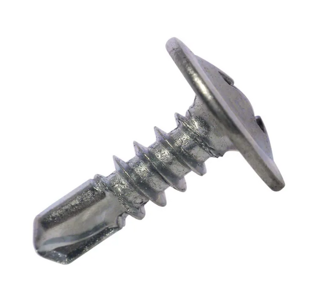 Tornillo con cabeza lenteja y punta broca, de 8 mm de diámetro y 1/2 pulgada de largo. Fabricado en acero.