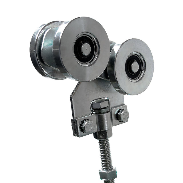 Corredera aérea modelo D1000, presentada en par. Diseñada para ofrecer estabilidad y facilidad de movimiento en sistemas corredizos.